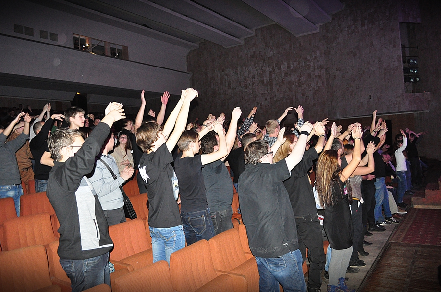 Перед выступлением музыканты группы, барабанщик Максим Удалов и гитарист Владимир Холстинин, в небольшом интервью ответили на пару вопросов. Так, «арийцы» рассказали о том, что понятия не имеют о многих современных рок-группах, к примеру, о коллективе «Ранетки». И вообще о современной рок-поросли. По словам музыкантов, они живут исключительно музыкой и имеют свои взгляды на современную политику внутри страны. Гости пребывали в отличном настроении и даже поделились впечатлениями от гастролей в соседних регионах. К слову, на вопрос о том, успел ли коллектив посмотреть Чебоксары, музыканты признались, что нет, но пообещали однажды вернуться в Чувашию, просто в гости. Удалов и Холстинин от лица группы «Ария» и от себя лично пожелали горожанам взаимопонимания, а Чебоксарам спокойствия.